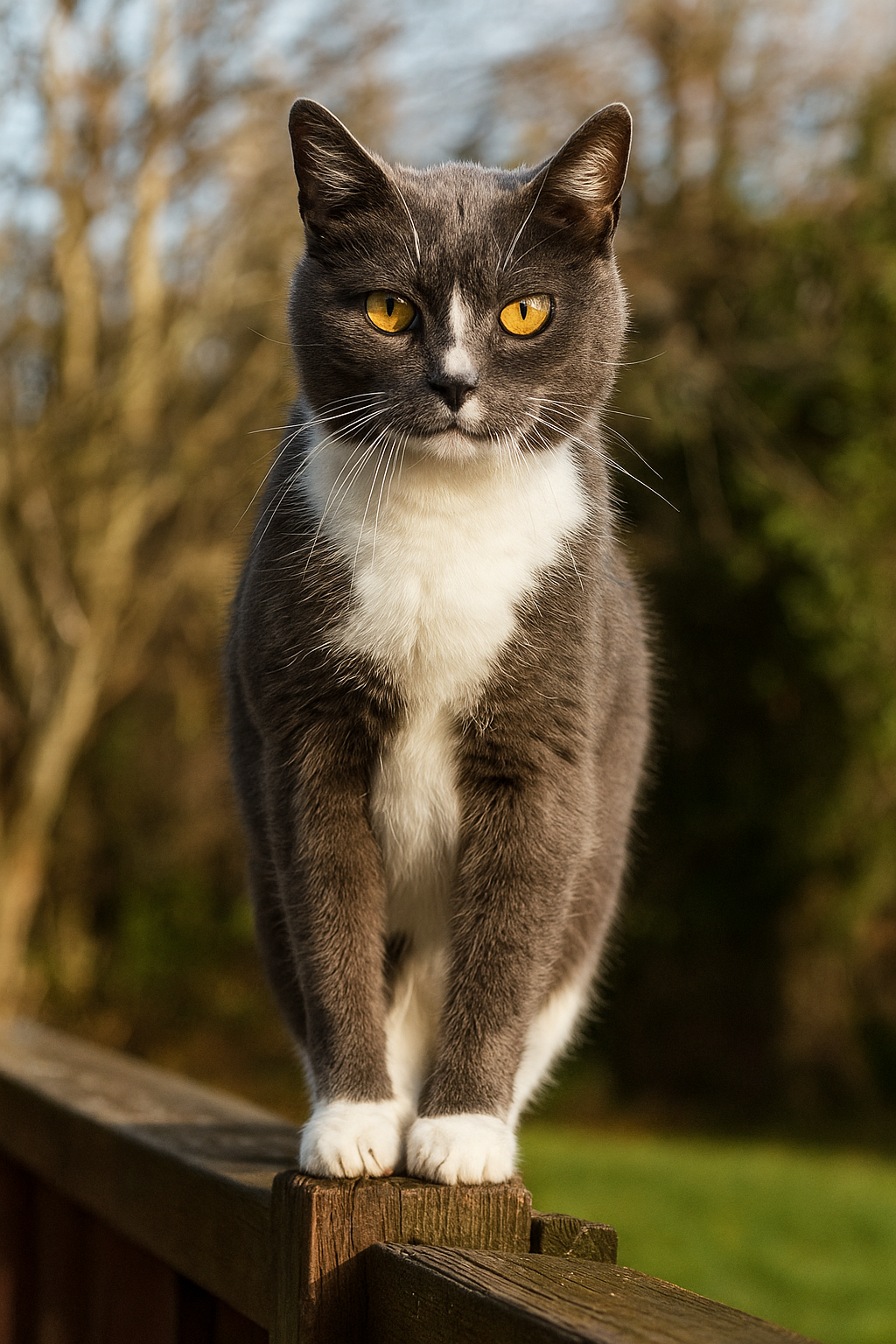 A flash of movement among the tomato plants caught my eye. A squirrel? Then I saw her—a tiny, pearl gray tuxedo kitten with white paws, studying me with large lemon-yellow eyes. The most beautiful kitten I’d ever seen, impossibly young to be fending for herself.I put out the word, “Lost Cat - Call Us.” Days passed until a man and his son arrived, hoping she was theirs. “Nope, too young,” they said, shaking their heads as they left. In a way I was glad—this kitten, whom I now called Lucky Magoo, and I had begun to bond.